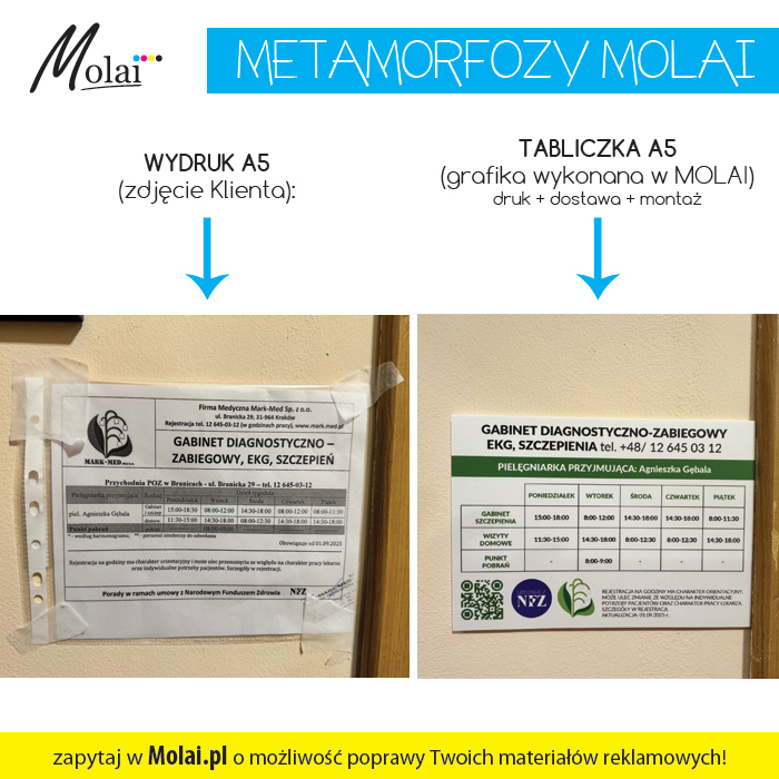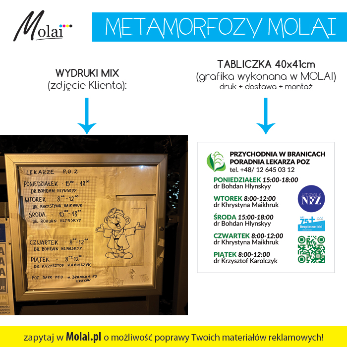 W Agencji Reklamowej Molai zamówisz grafikę do swoich materiałów reklamowych ... i nie tylko! W Molai przygotujemy pliki dokładnie tak, jak tego potrzebujesz (według wytycznych do druku, dodamy spady, poprawimy to co wskazane zostanie do poprawy, zasugerujemy zmiany itd.). Wykonane pliki zapisujemy we wszystkich potrzebnych formatach. Nie posiadamy gotowych szablonów pracy - każde zlecenie w Molai, to indywidualny projekt. Jeśli nie jesteś czegoś pewny nie martw się, w Molai podpowiemy i pomożemy kompleksowo wykonać Twoje zlecenie! Zaufało nam wiele firm, instytucji oraz osób prywatnych. Dołącz do nas i ciesz się swoją reklamą!