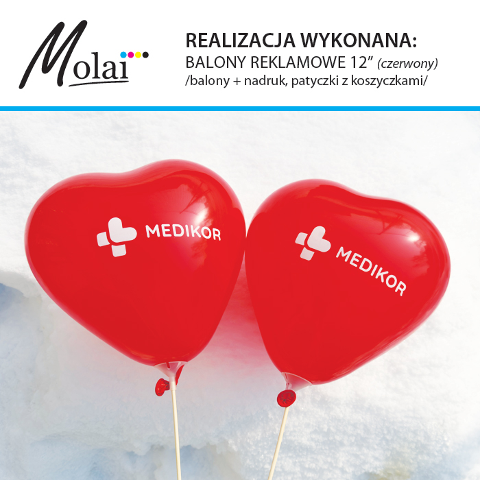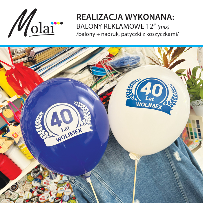 W Agencji Reklamowej Molai zamówisz baloniki z nadrukiem reklamowym - najbardziej popularny gadżet dla dzieci ... i nie tylko! Szeroki wybór kolorów Molai zawsze pozwoli wybrać coś odpowiedniego. Niska cena i duży gabaryt docelowy sprawia, że baloniki są często wybieranym produktem reklamowym do wypełnienia miejsca i zapewnienia widoczności na imprezach plenerowych i eventach. Doskonałe na promocje, urodziny, otwarcia firm, jubileusze itp. Oferowane przez nas baloniki mają średnicę 12" (po napompowaniu ok. 30cm). Balony nadają się do napełniania helem. Jeśli nie jesteś czegoś pewny nie martw się, w Molai podpowiemy i pomożemy kompleksowo wykonać Twoje zlecenie! Zaufało nam wiele firm, instytucji oraz osób prywatnych. Dołącz do nas i ciesz się swoją reklamą!
