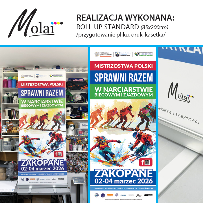 Przykładowe wydruki (bannery i roll up) zrealizowane w Molai:
