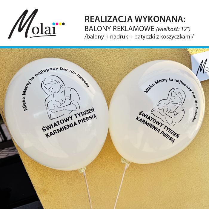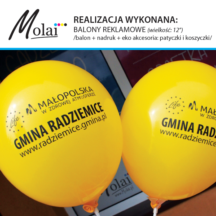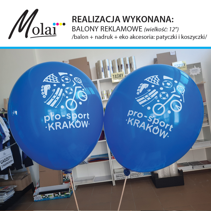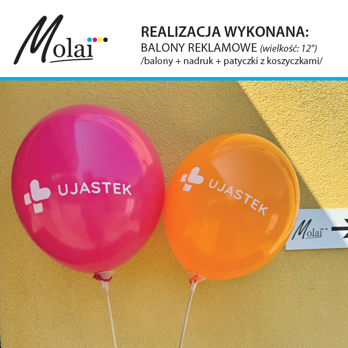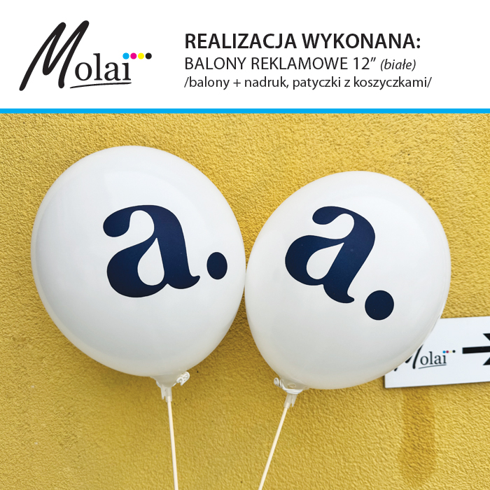 W Agencji Reklamowej Molai zamówisz baloniki z nadrukiem reklamowym - najbardziej popularny gadżet dla dzieci ... i nie tylko! Szeroki wybór kolorów Molai zawsze pozwoli wybrać coś odpowiedniego. Niska cena i duży gabaryt docelowy sprawia, że baloniki są często wybieranym produktem reklamowym do wypełnienia miejsca i zapewnienia widoczności na imprezach plenerowych i eventach. Doskonałe na promocje, urodziny, otwarcia firm, jubileusze itp. Oferowane przez nas baloniki mają średnicę 12" (po napompowaniu ok. 30cm). Balony nadają się do napełniania helem. Jeśli nie jesteś czegoś pewny nie martw się, w Molai podpowiemy i pomożemy kompleksowo wykonać Twoje zlecenie! Zaufało nam wiele firm, instytucji oraz osób prywatnych. Dołącz do nas i ciesz się swoją reklamą!
